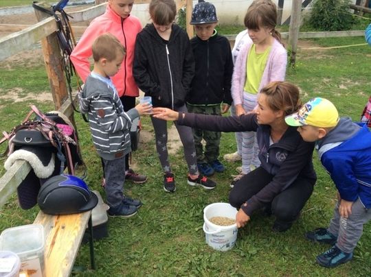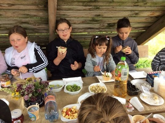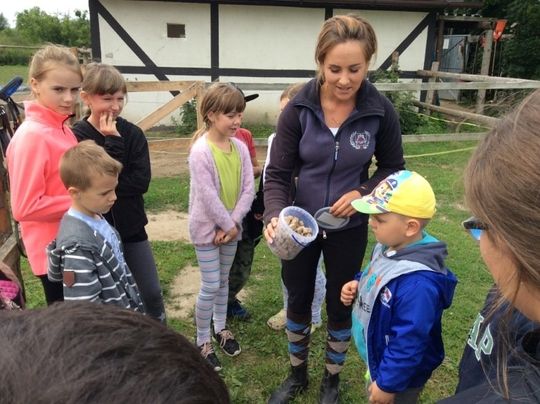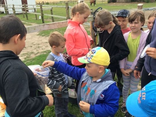 Pani Karolina Kurczewska bibliotekarka z Trzebiatowskiego Ośrodka Kultury zaprezentowała fragment książki Lilianny Fabisińskiej „Martynka- nauka jazdy konnej” . Panie ze Polskiego Stowarzyszenia KLANZA Małgorzata Borowska i Małgorzata Joanna Borowska na zajęciach plastycznych wykonały z dziećmi kule ziemskie, na których przedstawiły świat zanieczyszczony i taki w którym przyjemnie jest mieszkać. Każdy z nas w swoim otoczeniu może o to zadbać , aby w przyszłości cieszyć się czystym powietrzem, pięknem przyrody czy czystą wodą. Pani Kasia przedstawiła nam krótki wykład na temat życia, opieki, hodowli i pracy przy koniach. Wysłuchaliśmy opowiastki o hipoterapii, ziołolecznictwie i ekologicznej funkcji stajni. Na zajęciach kulinarnych, każdy przygotował swój pucharek z deserem w postaci owoców, bakalii, jogurtu, serka, dżemiku. A po tak wyczerpujących zajęciach rozdaliśmy nagrody książkowe z pamiątkowymi pieczątkami za ogromną ekologiczną wiedzę.