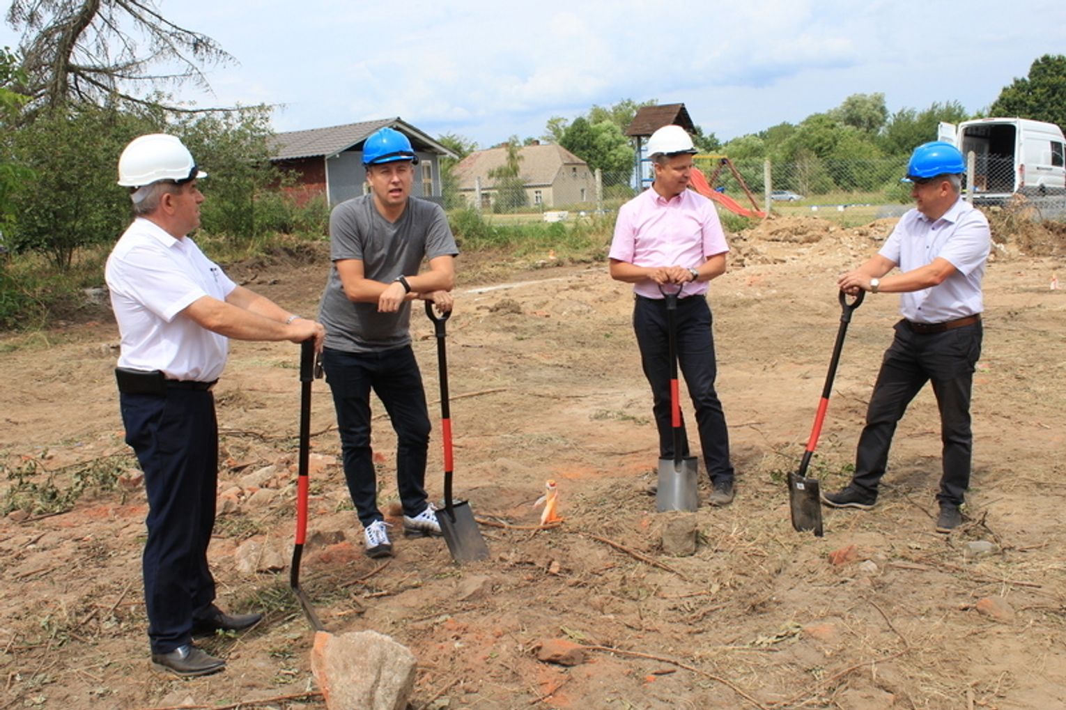 Ruszają prace przy budowie świetlicy w Wyszomierzu. W piątek, 12 lipca Burmistrz Robert Czapla w towarzystwie wiceprzewodniczących Rady Miejskiej - Jacka Rafińskiego i Marcina Wolnego oraz Pameli Springer z Wydziału Inwestycji UM i z udziałem wykonawcy Adama Dembińskiego wziął udział W przekazaniu placu budowy. Uczestnicy spotkania dokonali symbolicznego „wbicia szpadla”.