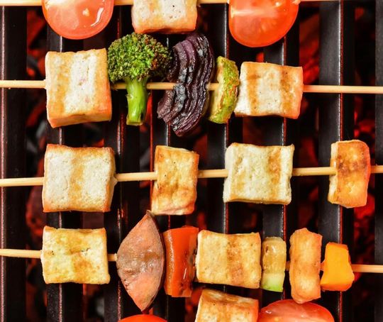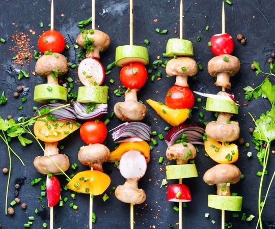 Warzywa (oprócz pomidorków) pokrój w grube kawałki, dopraw i grilluj do uzyskania odpowiedniego stopnia miękkości. Ser pokrój w kostkę. Na patyczki do szaszłyków nadziewaj na przemian warzywa, ser i pomidorki koktajlowe. Gotowe szaszłyki możesz jeszcze chwilę podgrzać na grillu, by ser lekko się roztopił.