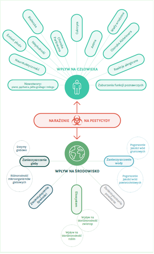 Rys. Wpływ pestycydów na człowieka i środowisko