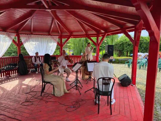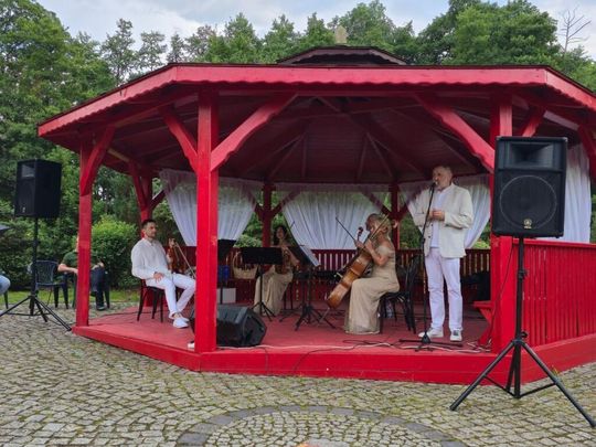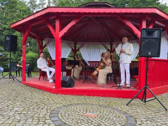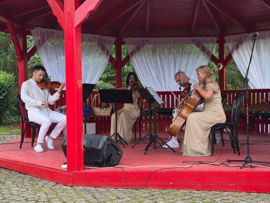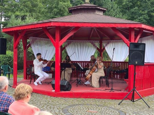 W niedzielę 13 lipca w Ogrodzie Japońskim kwartet smyczkowy AQUARTET zainaugurował kolejną edycje Gryfickiego Lata Muzycznego - w trochę zmienionej formule ale nadal przyciągającego gryfickich melomanów do wysłuchania plenerowych koncertów. Na widowni zauważyliśmy nawet Burmistrza Gryfic Tomasza Aniuksztysa.