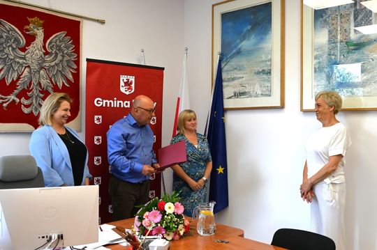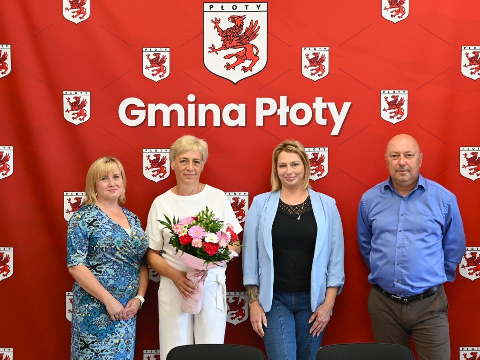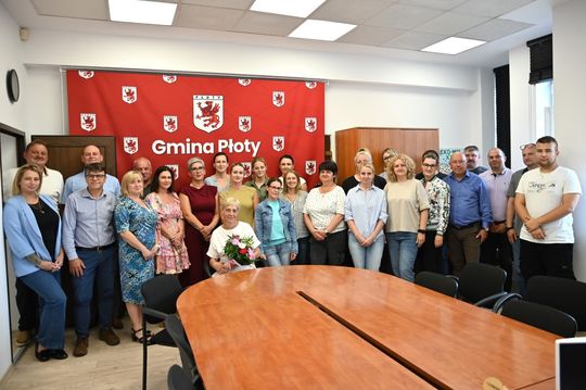Z tej okazji Burmistrz Gminy Płoty Szymon Klimko, Zastępca burmistrza Paulina Kusajda, Skarbnik Małgorzata Gołąb wraz z pracownikami Urzędu, a także Sołtysem Sołectwa Karczewie Sławomirem Bukowcem, złożyli serdeczne gratulacje oraz życzenia zdrowia, spokoju, realizacji pasji i wielu pięknych chwil na zasłużonej emeryturze.