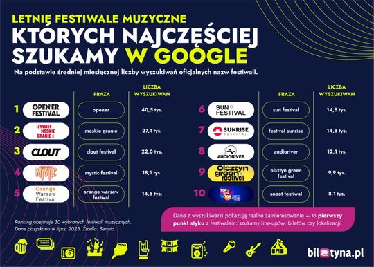 Pełny raport dostępny jest na blogu biletyna.pl: https://biletyna.pl/blog/ranking-letnich-festiwali-muzycznych-w-polsce