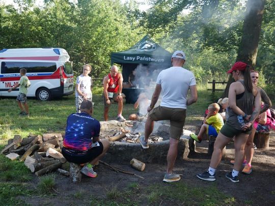 Niespodzianką dla uczestników biegu była zorganizowana na półmetku przez mieszkańców osady i leśnictwa Lubin.