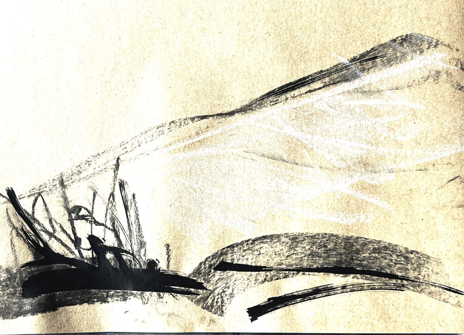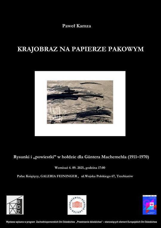 Wystawę „Krajobraz na papierze pakowym” tworzą rysunki i „powiestki” Pawła Kamzy inspirowane tematami i techniką pracy Güntera Machemehla.