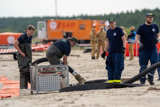 - W całej akcji udział bierze blisko 400 osób, z czego połowa w części lądowej – mówi Adam Rudawski. – Ćwiczenia odbywają się w realnych warunkach tzn. jednostki faktycznie wypłynęły na morze, na plaży pojawiły się wszystkie służby i instytucje zaangażowane w akcję. Morze rzeczywiście zostało "zanieczyszczone" - ropę imituje popcorn. Użyliśmy sztucznych ptaków, które trzeba oczyścić, zabezpieczyć i przetransportować. Wykorzystaliśmy prawdziwe beczki. Wszystko po to, aby te ćwiczenia były jak najbardziej realistyczne.
