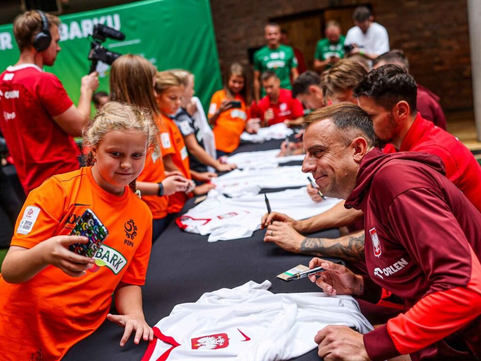 Po serii pytań od dzieci prowadzący spotkanie odwrócił role i zapytał, czy piłkarze mają coś do powiedzenia młodym adeptom futbolu. Kapitan reprezentacji Polski, Robert Lewandowski, przejął mikrofon i z uśmiechem zapytał zwycięzców XXV edycji Pucharu Tymbarku, jak będą dopingować Polaków podczas meczu z Finlandią. Odpowiedź była wyjątkowa – młode piłkarki i piłkarze zaśpiewali z entuzjazmem jedną z przyśpiewek, a pozostali uczestnicy spotkania zaczęli klaskać w jej rytm, tworząc atmosferę stadionowego dopingu jeszcze przed pierwszym gwizdkiem. Po wspólnych rozmowach i zdjęciach przyszedł czas na indywidualne autografy i krótkie rozmowy.
