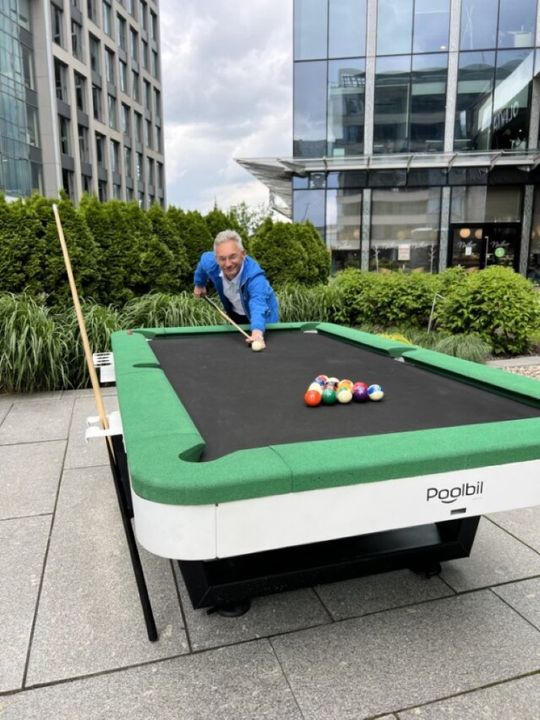 To jednak nie wszystko, co wokół bilardu dzieje się w Olivii - mówi Maciej Kotarski. Z początkiem 2025 roku jeden z rezydentów wpadł na pomysł udostępnienia pracownikom i gościom Olivii zewnętrznego stołu bilardowego. Nawiązaliśmy kontakt z polskim producentem takich stołów, znaleźliśmy odpowiednie miejsce na patio i teraz można grać w bilard Olivii pod gołym niebem. Podłoże stołu ma specjalną strukturę, która zapewnia niemal identyczne warunki gry, jak na stole pokrytym suknem. Nie doczekaliśmy się jeszcze w Olivii turnieju bilardowego na świeżym powietrzu, ale stół przyciąga amatorów tej rozrywki, zwłaszcza w przerwie lunchowej czy podczas naszych wydarzeń z cyklu Lato Na Patio.