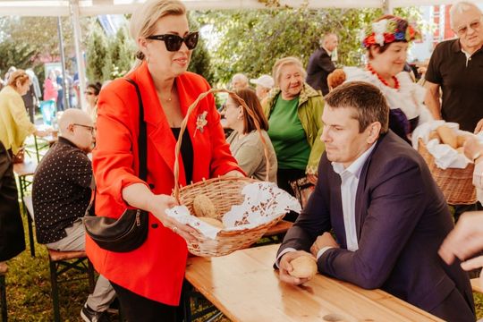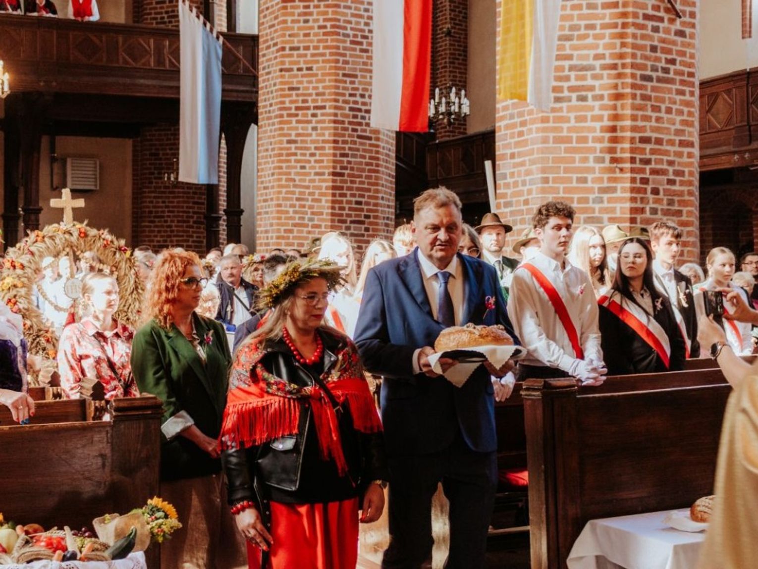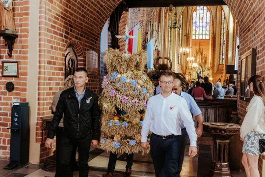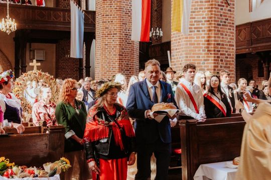 Podczas Dożynek w Trzebiatowie, Trzebiatowski Ośrodek Kultury realizował projekt „TRADYCJE I OBRZĘDY DOŻYNKOWE dofinansowany ze środków budżetu państwa, przyznanych przez Ministra Edukacji w ramach programu Nasze tradycje”. Celem projektu było popularyzowanie i promowanie dziedzictwa kulturowego opartego na lokalnych tradycjach i obrzędach związanych ze świętem plonów. Zaprosiliśmy mieszkańców do uczestniczenia w szeregu działań opartych na bogatym dziedzictwie kulturowym związanym ze świętem plonów. Podczas Mszy dożynkowej złożono dary w podziękowaniu za zebrane plony. Następnie barwny korowód ze starostami dożynek przeszedł ulicami miasta pod Pałac, gdzie wszystkie delegacje z sołectw prezentowały przygotowane przepiękne wieńce dożynkowe. Obrzędowi towarzyszyły tradycyjne przyśpiewki w wykonaniu zespołu ludowego Trzebiatowiacy. Wszyscy uczestnicy wzięli również udział w obrzędzie dzielenia się chlebem, upieczonym z tegorocznych zbiorów. Na scenie prezentowały się zespoły ludowe i biesiadne prezentujące m.in. pieśni obrzędowo- dożynkowe, przyśpiewki i tańce obrzędowe - dożynkowy zwyczaj polegający na uroczystym obnoszeniu, tańczeniu i śpiewaniu wokół wieńca na zakończenie zbiorów, który symbolizuje urodzaj, dostatek i wdzięczność za plony (BAŁTYCKA SZKOŁA BALETOWA, TRZEBIATOWSKI ZESPÓŁ FOLKLORYSTYCZNY ARAMIS, ZESPÓŁ BISS, TRZEBIATOWIACY, MIROSŁAW WANAT, CZERWONA RÓŻA, KUKUŁECZKA).