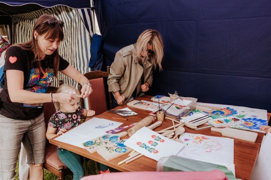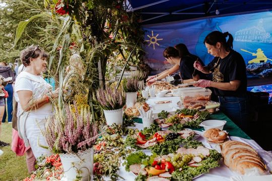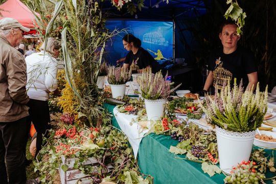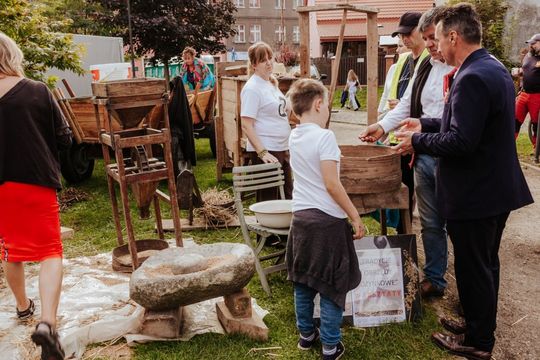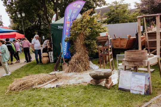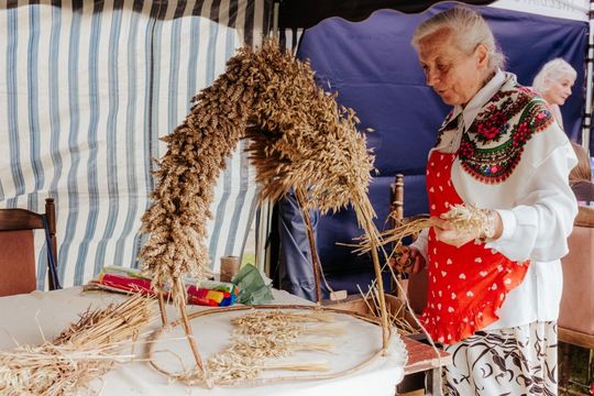 Ponadto w ogrodach pałacowych trwał JARMARK DOŻYNKOWY, podczas którego odbyły się: konkurs wieńcowy, warsztaty: starych rzemiosł, wyplatania elementów do wieńców dożynkowych, malowanie ornamentów ludowych, spotkanie z pieśnią obrzędową - dożynkową w wykonaniu SŁOWIAŃSKICH ECH. Na stoisku z poczęstunkiem dożynkowym można było spróbować smacznych potraw i wypieków, a w Muzeum Pałacowego zwiedzić ekspozycje prezentujące dawne gospodarstwa i stare rzemiosło. Na zakończenie zaprosiliśmy do zabawy dożynkowej z DJ FOKU$.