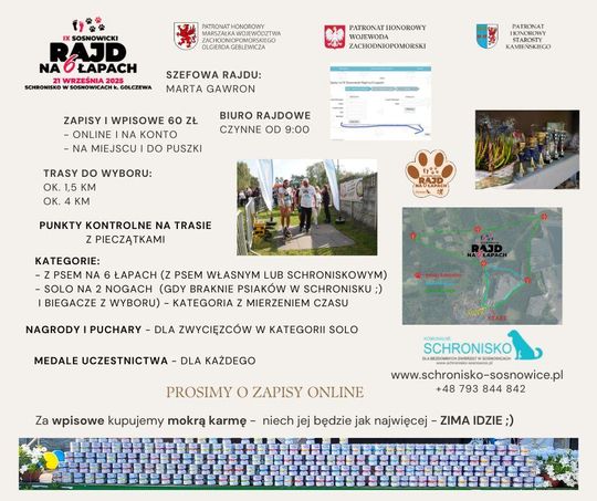 Zapisywać można się na platformie https://b4sportonline.pl/ix_sosnowicki_rajd_na_6_lapach_2025/zapisy_na_ix_sosnowicki_rajd_na_6_lapach