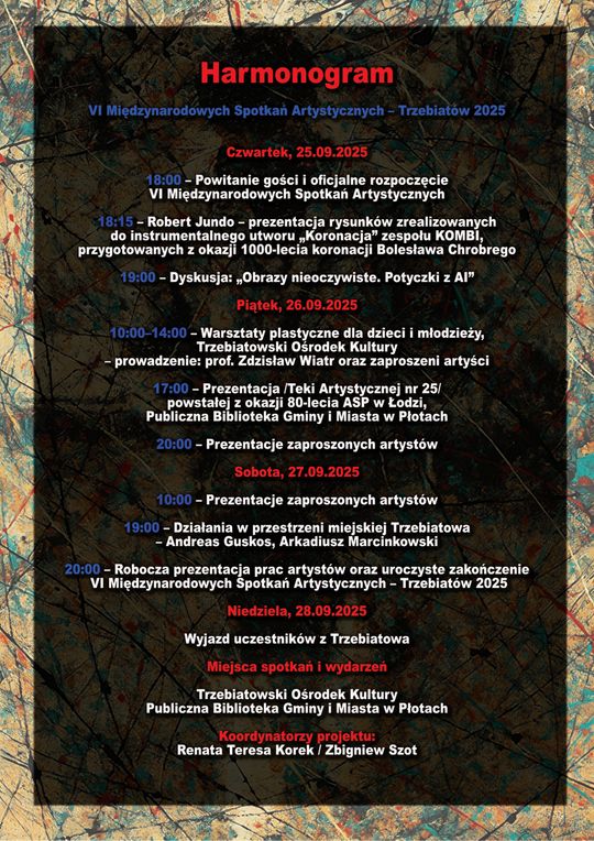 20:00 – Robocza prezentacja prac artystów oraz uroczyste zakończenie VI Międzynarodowych Spotkań Artystycznych – Trzebiatów 2025