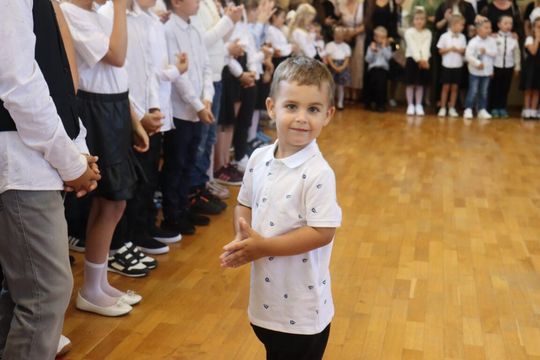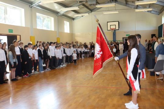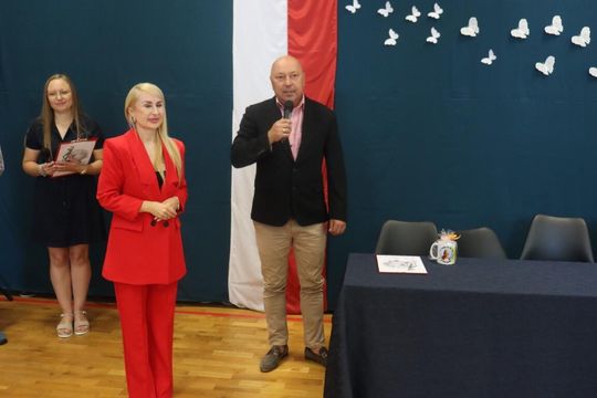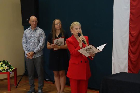 Pani dyrektor Marzena Stępień serdecznie powitała całą społeczność szkolną, życząc wszystkim udanego roku szkolnego, pełnego wzajemnego zrozumienia, wytrwałości oraz dobrej atmosfery we wspólnym działaniu. Podkreśliła, jak istotne jest wzajemne wsparcie w budowaniu przyjaznego, bezpiecznego i inspirującego środowiska do nauki i wychowania.