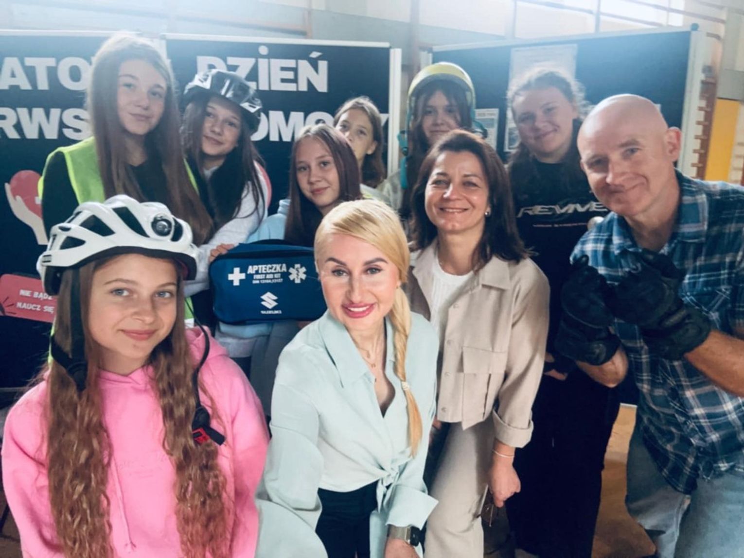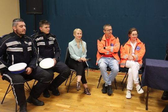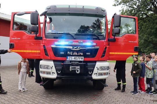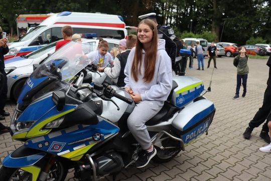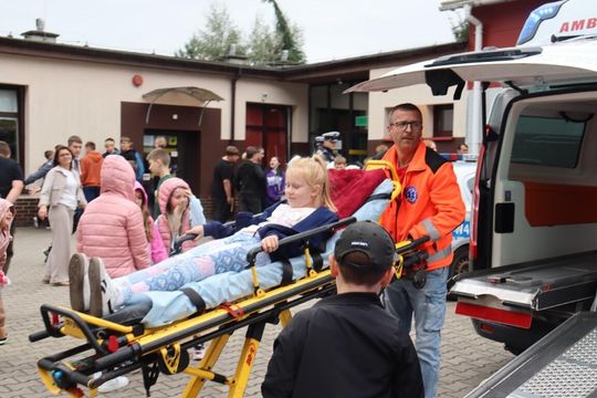 Następnie akcja przeniosła się na szkolne podwórko, gdzie można było obejrzeć sprzęt z bliska i sprawdzić w praktyce zdobytą wiedzę. Na uczniach ogromne wrażenie zrobiły policyjne motocykle – niemal każdy chciał usiąść w „siodle” i poczuć się jak funkcjonariusz w akcji.. Zespół medyczny Mil Med pokazał, jak korzystać z noszy, a strażacy odkryli tajemnice wnętrza swojego wozu bojowego. Nie zabrakło także okazji, by zajrzeć do transportu medycznego i radiowozu, które na co dzień wzbudzają respekt na drodze.