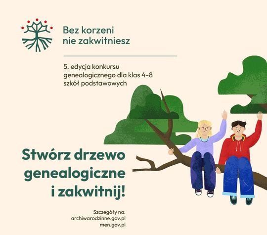 „Bez korzeni nie zakwitniesz. Moja Wielka i Mała Ojczyzna” to projekt edukacyjny Archiwów Państwowych i Ministerstwa Edukacji Narodowej, adresowany do uczniów klas 4-8 szkół podstawowych i ich nauczycieli. Zadaniem uczestników jest stworzenie drzewa genealogicznego oraz prezentacji, która w nowoczesny i twórczy sposób opowie historię rodziny i pokaże jej związki z lokalną społecznością. Celem inicjatywy jest uwrażliwienie młodzieży na wartość dziedzictwa i pamięci, budowanie szacunku dla przeszłości, a także rozwijanie świadomości tożsamości lokalnej i narodowej. Poprzednia edycja konkursu, rozstrzygnięta w maju 2025 r., okazała się przełomowa – wpłynęły aż 684 prace z 370 szkół podstawowych. Wyłoniono aż 17 laureatów,