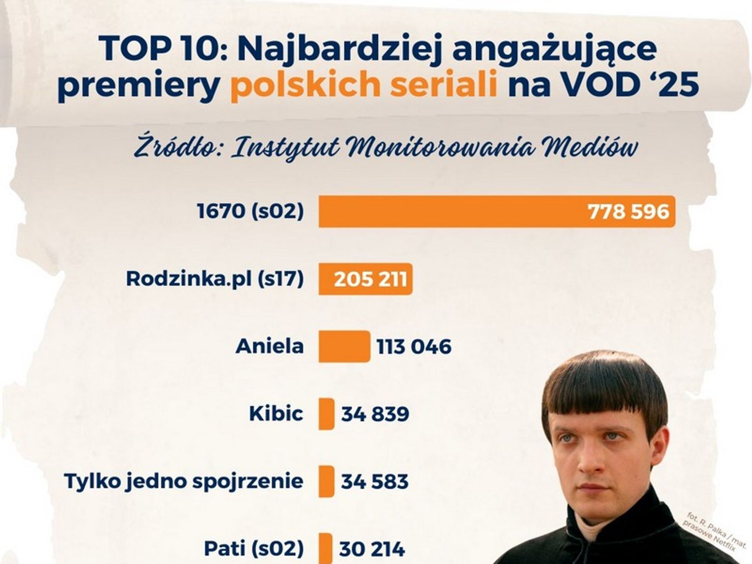 W dobie platform streamingowych, które rzadko dzielą się szczegółowymi danymi o oglądalności swoich produkcji, Instytut Monitorowania Mediów (IMM) postanowił stworzyć własne zestawienie popularności polskich seriali – oparte nie na liczbie widzów, lecz na aktywności w mediach społecznościowych. Dzięki temu możliwe jest uchwycenie oddziaływania premier i reakcji internautów w czasie rzeczywistym. Na tym tle premierowy drugi sezon „1670” wyraźnie wybił się ponad konkurencję, generując rekordowe zaangażowanie internautów.