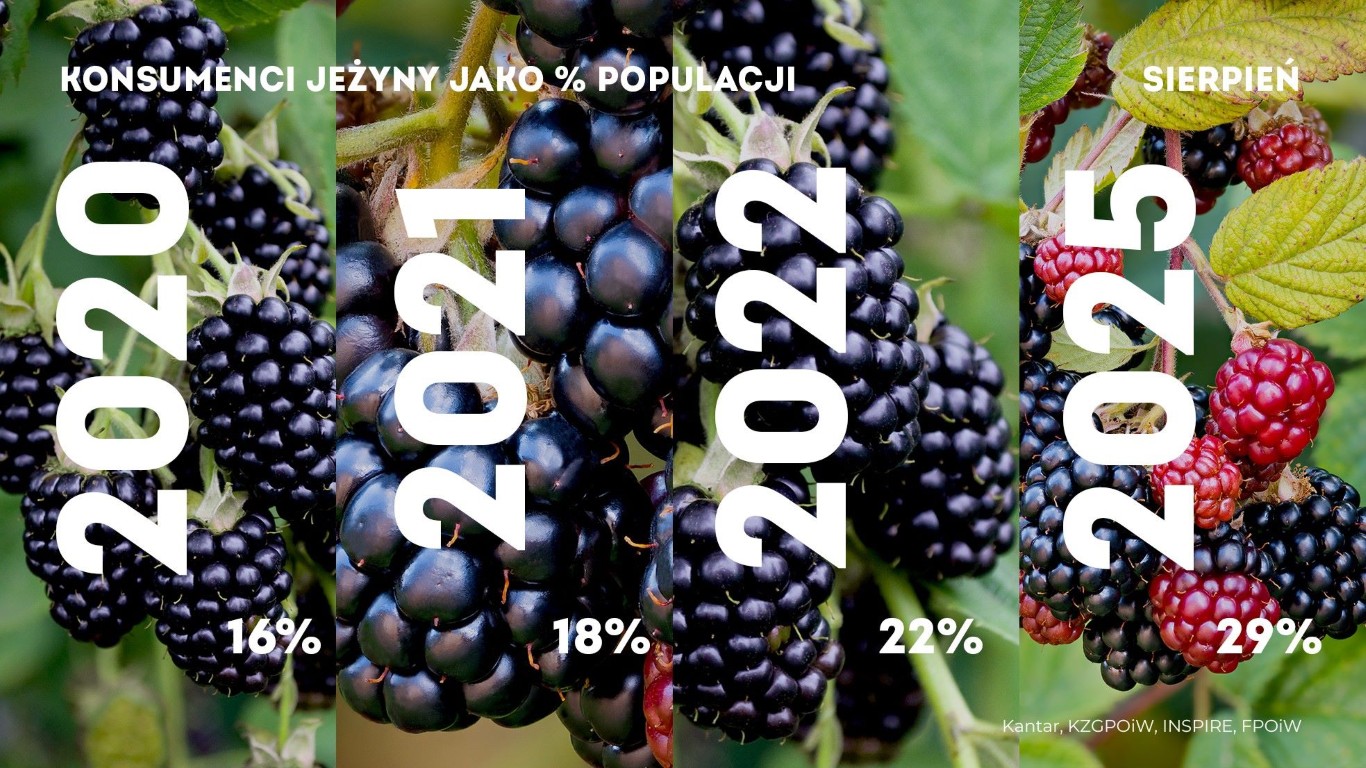 Dane Kantar Polska pokazują wyraźny wzrost liczby Polaków jedzących jeżyny.