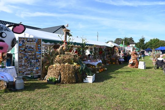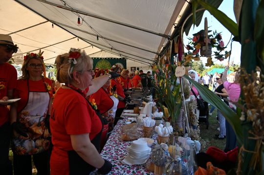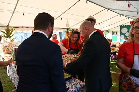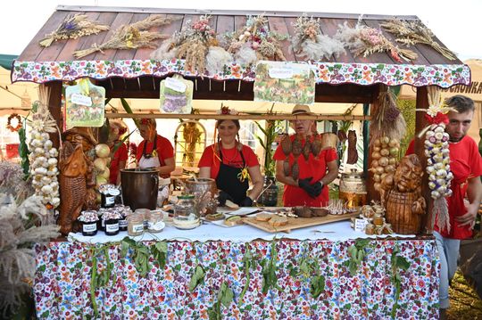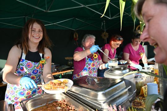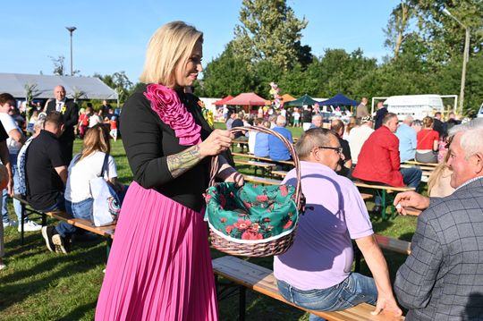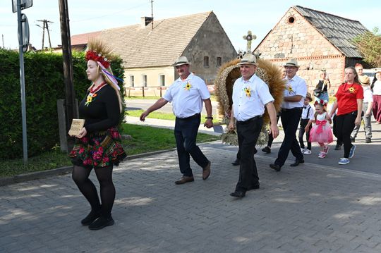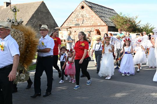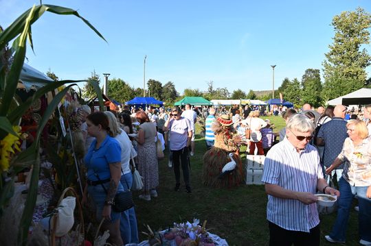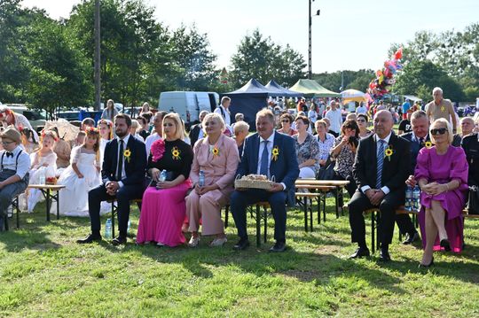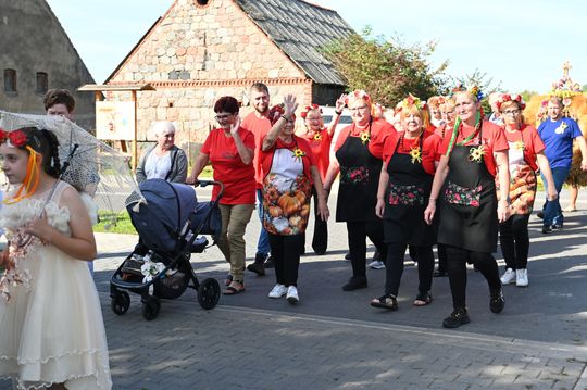 Na placu przy świetlicy dostępnych było 36 stoisk, oferujących lokalne produkty, rękodzieło, pyszne jedzenie oraz atrakcje dla dzieci i dorosłych. Przez cały dzień teren dożynkowy tętnił życiem - przybyło wiele osób, zarówno mieszkańców gminy, jak i gości z okolicznych miejscowości, którzy wspólnie świętowali i korzystali z przygotowanych atrakcji.