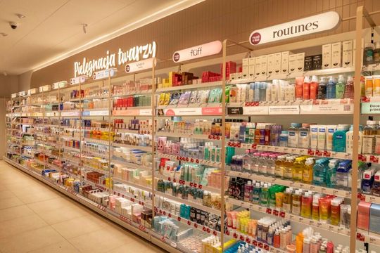 Drogeria w nowej odsłonie nie jest podzielona na poszczególne strefy czy kategorie. Jest jedną spójną całością.