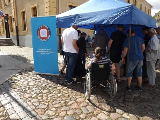 w ramach którego za poprawną odpowiedź otrzymywały drobne upominki. Dorośli interesowali się tematyką zdrowego odżywiania, profilaktyką chorób nowotworowych, szczepieniami ochronnymi. Stoisko odwiedzili również wychowankowie Domu Pomocy Społecznej z Jaromina.