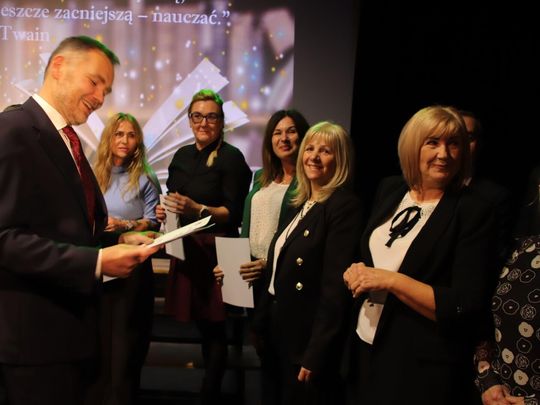 Burmistrz Gryfic pogratulował wszystkim nauczycielom za codzienny trud, zaangażowanie i inspirację dla młodego pokolenia oraz najbardziej zasłużonym wręczył nagrody z okazji Dnia edukacji Narodowej określanego też mianem Dnia Nauczyciela.