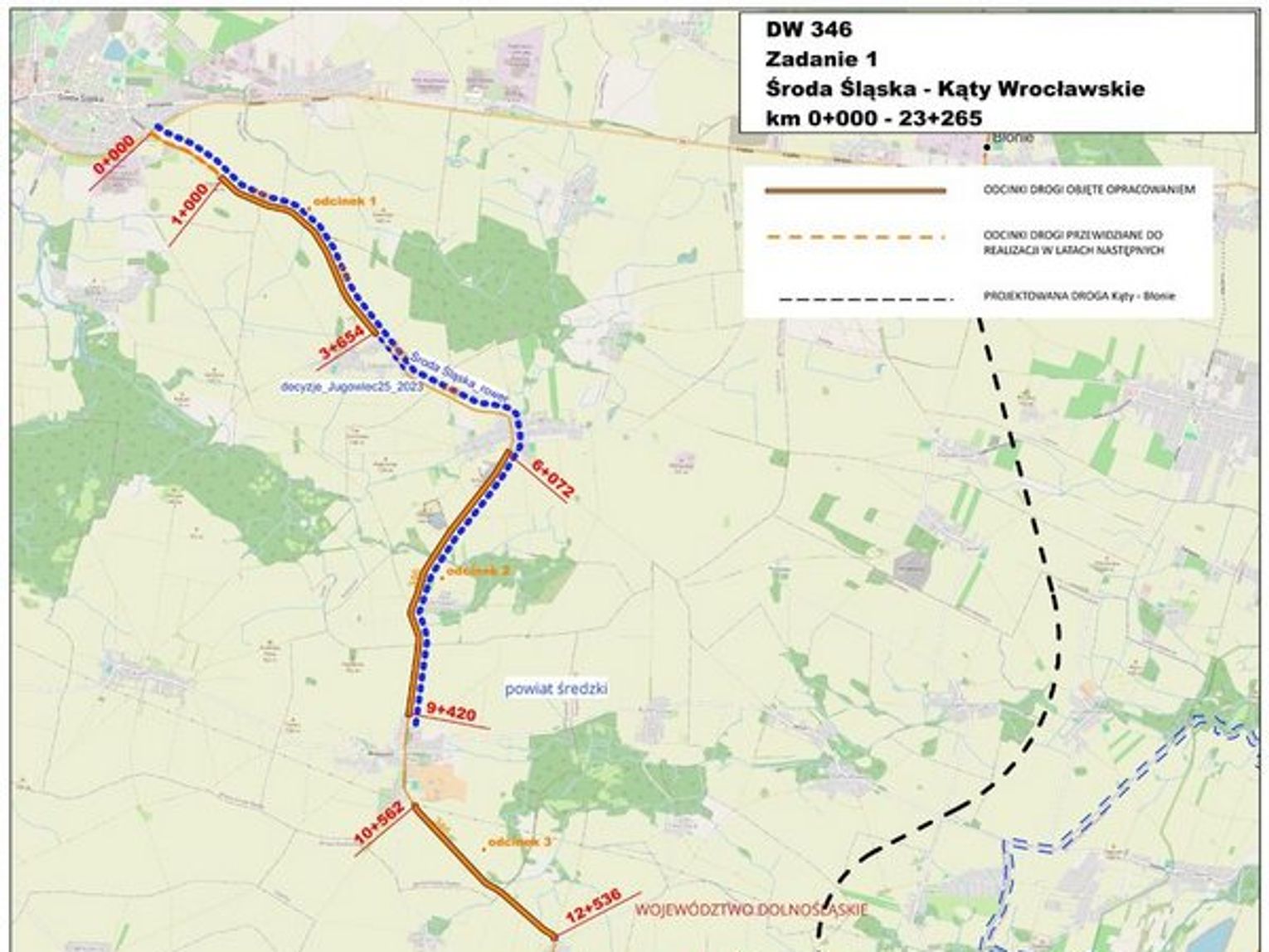 Droga wojewódzka nr 346 to jedna z najważniejszych tras lokalnych Dolnego Śląska, łącząca dwa dynamicznie rozwijające się ośrodki – Środę Śląską i Kąty Wrocławskie. Trasa ta pełni funkcję nie tylko komunikacyjną, ale i gospodarczą, stanowiąc istotne połączenie dla transportu lokalnego i regionalnego, a także alternatywę dla ruchu w przypadku utrudnień na głównych ciągach komunikacyjnych wokół Wrocławia. Modernizacja ponad 11,5 km drogi znacząco poprawi jej funkcjonalność, bezpieczeństwo i komfort podróży, a także wpłynie na atrakcyjność inwestycyjną i turystyczną całego obszaru.