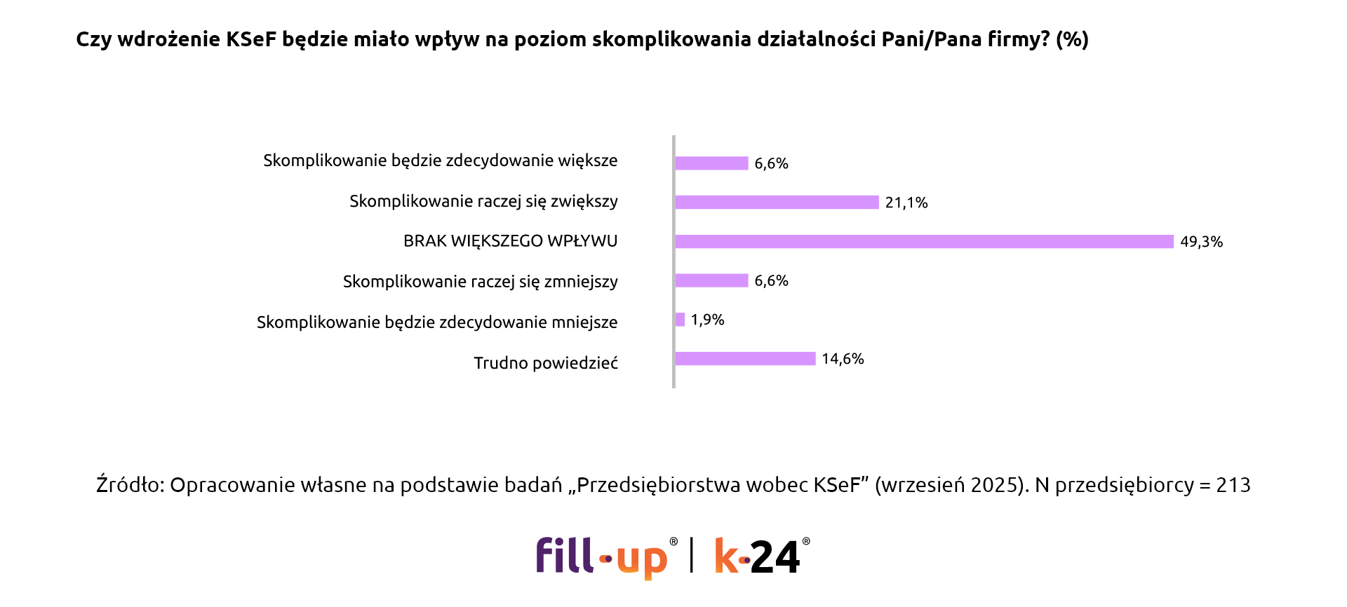 Generalnie spokój wydaje się dominującym uczuciem wśród przedsiębiorców. Zdaniem prawie 72% badanych KSeF nie wywróci ich działalności do góry nogami (a może nawet ułatwi działalność?).