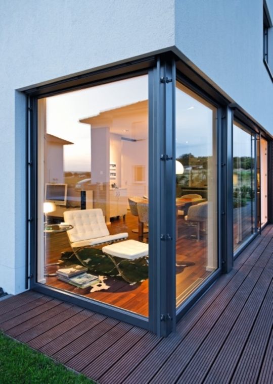Okna narożne często stosowane są jako bazowy element aranżacji pomieszczeń. Najczęściej wykorzystywane są w salonie lub części wypoczynkowej, gdzie najłatwiej jest wykorzystać cały potencjał dużych, narożnych przeszkleń. Podobnie, jak narożnik w kształcie litery L, na którym zasiądą wszyscy bliscy, tak narożne okno w kształcie litery L wpuści do środka dużo ciepła i światła. Dodatkowo, otwierając salon na otaczający krajobraz sprawiamy, iż widok będzie zmieniał się nieustannie wraz ze zmianami pory dnia, roku czy pogody. To lepsze niż obraz.