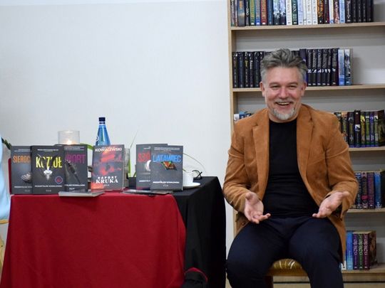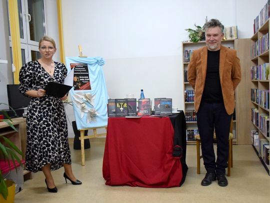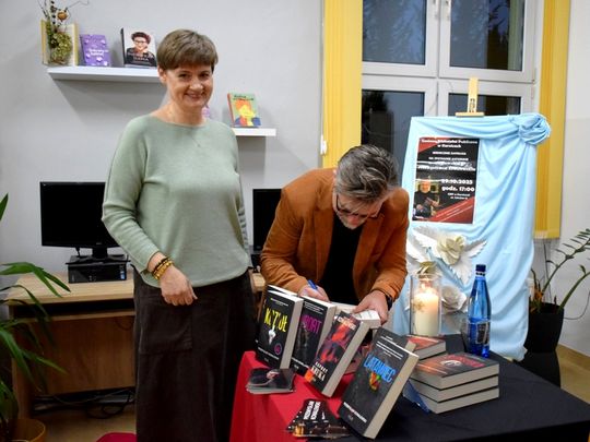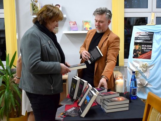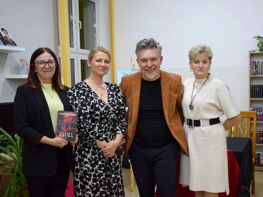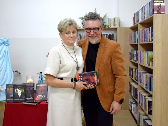 29 października Gminna Biblioteka Publiczna w Karnicach miała zaszczyt gościć Przemysława Kowalewskiego – autora cenionych powieści kryminalnych, takich jak Raport Kruka, Sierociniec, Latawiec, Szóstka czy Kozioł. Pisarz spotkał się z czytelnikami, by opowiedzieć o swojej twórczości oraz zaprezentować najnowsze dzieło zatytułowane Kurort. Spotkanie poprowadziła Dyrektor GBP, Anna Majkoś, która w rozmowie z autorem poruszyła wiele ciekawych wątków – od początków jego kariery pisarskiej, po inspiracje stojące za kolejnymi książkami. Przemysław Kowalewski wspominał, że zanim na dobre poświęcił się pisaniu, przez lata pracował w gryfickim samorządzie. Dopiero w wieku 45 lat postanowił spełnić swoje marzenie o tworzeniu powieści. Jak sam przyznał, pierwszą książkę napisał z myślą o swoim synu co stało się początkiem jego literackiej drogi. Autor zdradził również kilka szczegółów dotyczących swojego najnowszego kryminału pt. Kurort. Akcja powieści toczy się w zakładzie psychiatrycznym, a fabuła jak w większości jego utworów oparta jest na prawdziwych wydarzeniach. Tym razem inspiracją były „Dzieci z Krychowic” oraz eksperymenty i badania prowadzone na młodzieży w ośrodkach psychiatrycznych w latach 70. Czytelnicy chętnie zadawali pytania, dotyczące zarówno procesu twórczego, jak i życia prywatnego pisarza. Nie zabrakło również chwil na wspólne zdjęcia oraz możliwości uzyskania autografu z osobistą dedykacją.