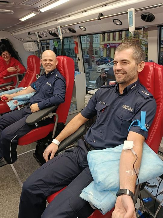 W „krwiobusie” nie mogło zabraknąć policjantów z Gryfic. Udział mundurowych w takich działaniach to wyraz uznania dla tego typu inicjatyw i solidarności z tymi, którzy nierzadko najbardziej potrzebują właśnie krwi by żyć.