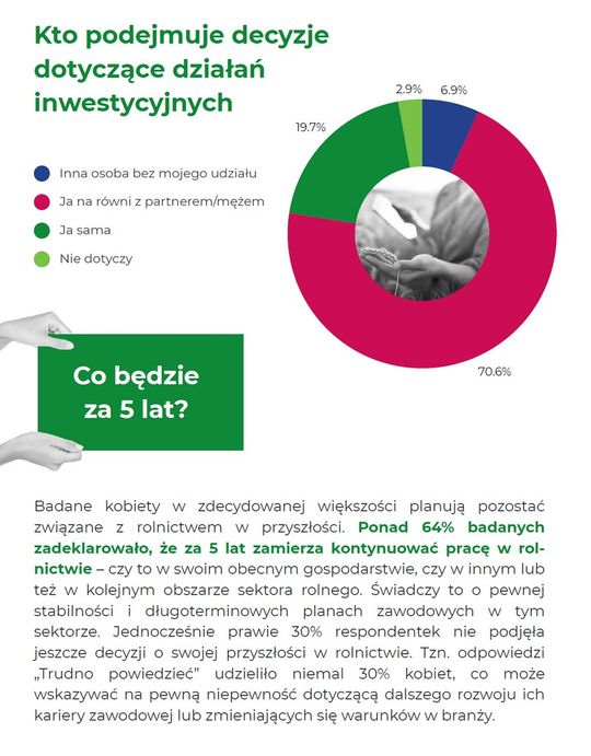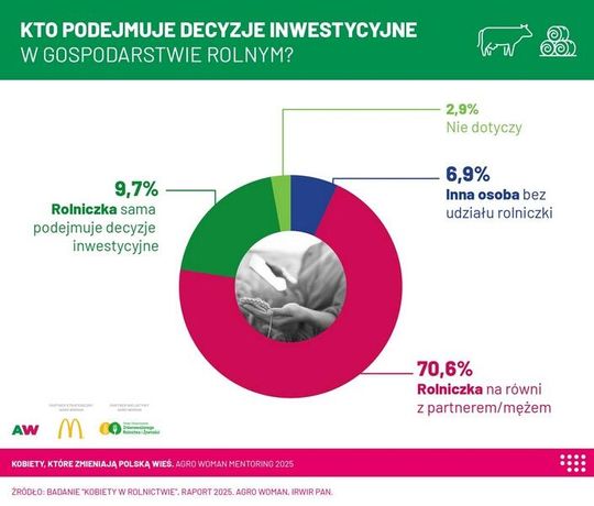 Z raportu „Kobiety w rolnictwie 2025”* wynika, że panie prowadzą lub współprowadzą w polskim rolnictwie blisko 30% gospodarstw rolnych. Ponad połowa z nich ma wykształcenie kierunkowe, a aż 57% – wyższe, co czyni je coraz lepiej przygotowanymi do zarządzania i podejmowania decyzji inwestycyjnych. Aż 70% rolniczek deklaruje, że współdecyduje o kierunkach rozwoju gospodarstw wspólnie z partnerem, a 20% robi to samodzielnie, co pokazuje, jak silną i kompetentną grupą są kobiety na wsi. Jednocześnie tylko 30% z nich wzięło udział w szkoleniach branżowych w ostatnich trzech latach. To dowód, jak duży potencjał rozwojowy wciąż pozostaje do wykorzystania.