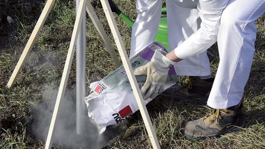 Są też sytuacje, w których potrzebne jest błyskawiczne działanie – wtedy warto sięgnąć po Baumit Gala Fix, beton o bardzo wysokiej wytrzymałości (≥40 MPa), który wiąże już w 30 minut przy zastosowaniu bez mieszania, a po godzinie przy tradycyjnym mieszaniu. To rozwiązanie stworzone głównie z myślą o pracach montażowych i naprawczych w terenie, ale też wszędzie tam, gdzie liczy się czas, siła oraz pełna mobilność. Idealne do szybkich montaży, napraw czy prac w miejscach bez dostępu do energii elektrycznej. Nie wymaga mieszarki ani elektronarzędzi – wystarczy wysypać i polać wodą, choć w razie potrzeby, może być także przygotowany w sposób tradycyjny i mieszany mechanicznie.