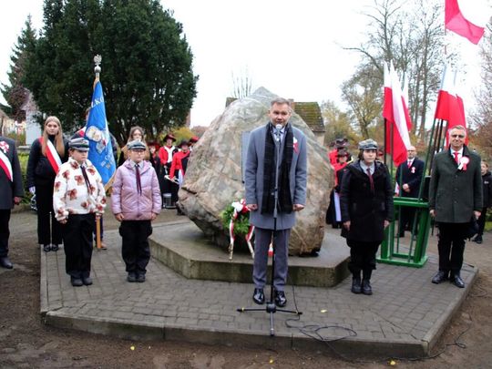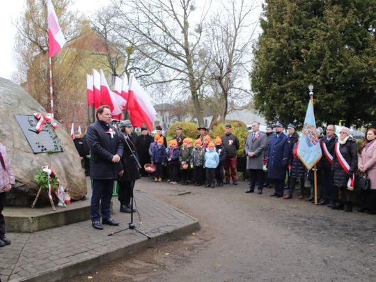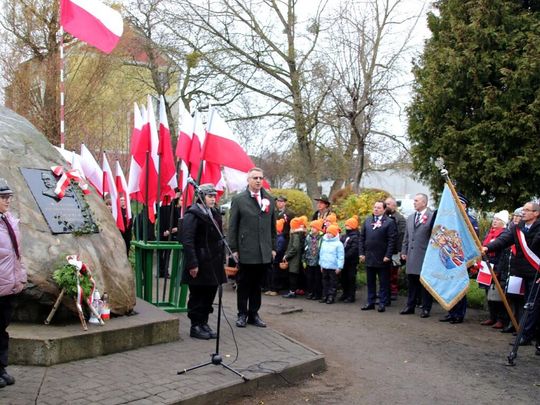 Uroczystości – jak co roku rozpoczęły się o godz. 11.11 przy głazie Marszałka Piłsudskiego, gdzie po okolicznościowych wystąpieniach złożono wiązanki kwiatów. Następnie uczestnicy uroczystości przemaszerowali do kościoła pw. WNMP na Mszę Świętą za Ojczyznę.
