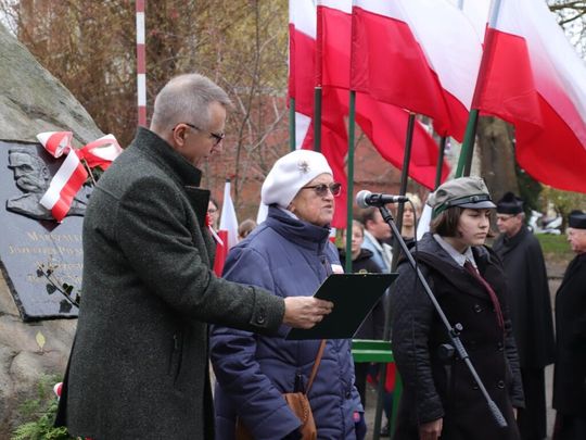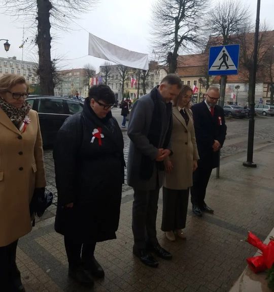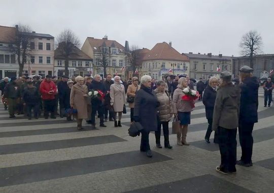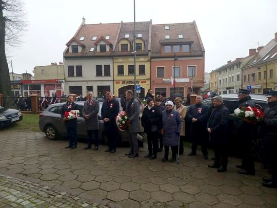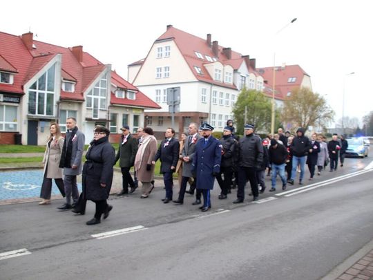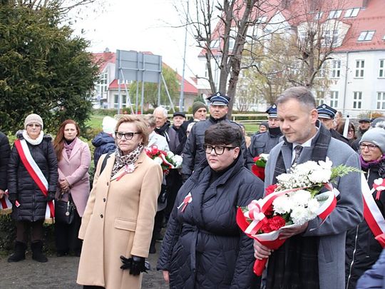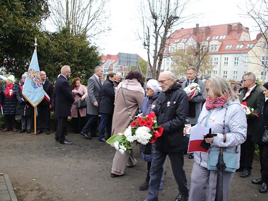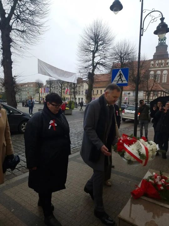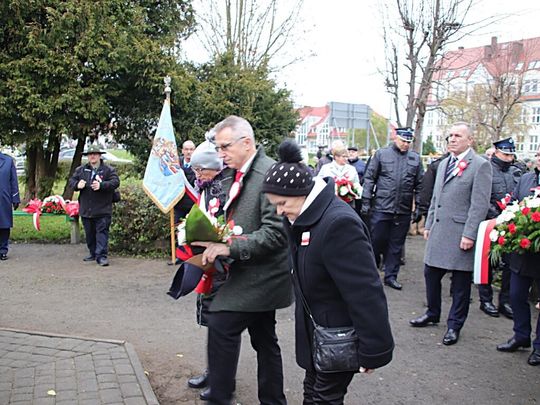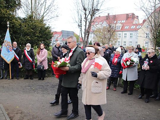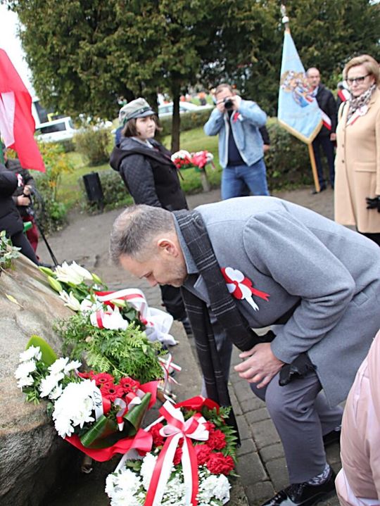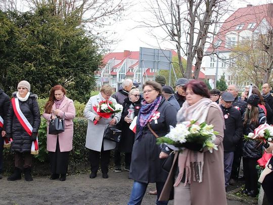 Po Mszy członkowie oficjalnych delegacji złożyli kwiaty pod pomnikiem św. Jana Pawła II i w asyście orkiestry Red Swing Low Gryfice, przemaszerowali na Plac Zwycięstwa na dalszą część uroczystości. Po wspólnym odśpiewaniu „Mazurka Dąbrowskiego” przed pomnikiem złożono wiązanki kwiatów. Kwiaty złożono również przed tablicą pamiątkową na ścianie GDK.