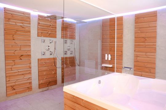 - Sosnowe i świerkowe deski po termowaniu uzyskują szlachetną, ciepłą barwę, która fantastycznie komponuje się z nowoczesnymi aranżacjami w strefach wellness czy hotelowych spa. Są świetnym izolatorem akustycznym, dzięki czemu oprócz ciepła otrzymujemy również ciszę. Idealnie sprawdzają się w wilgotnych warunkach — w saunach, łazienkach, a także przy basenach. Nie paczą się, nie gniją, ale również nie nagrzewają się do temperatury, która mogłaby parzyć. Badania z fińskich saun publicznych, gdzie deski nagrzewają się po 10 godzin dziennie, potwierdzają ich wyjątkową stabilność – dodaje Darina Lazarova.