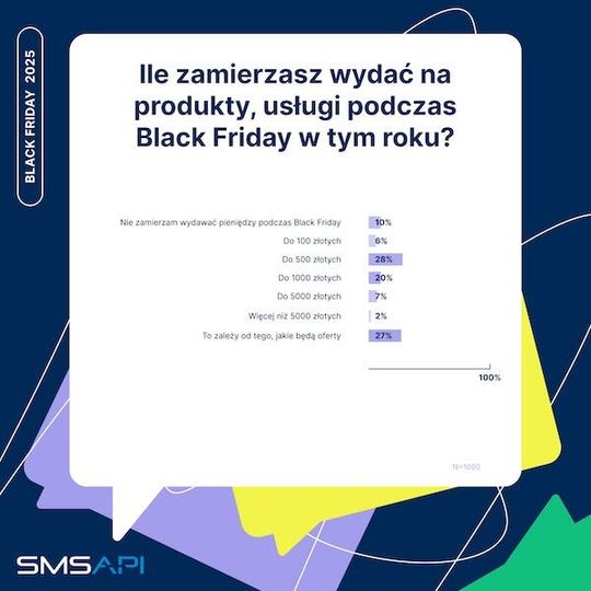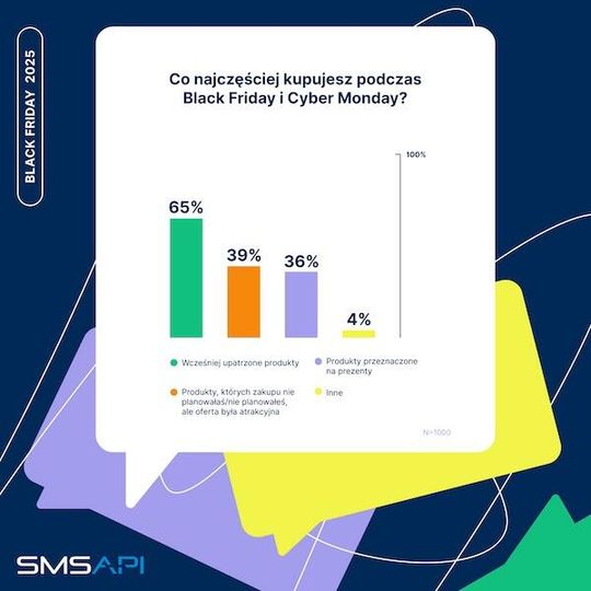 Badanie ankietowe “Zainteresowanie promocjami na Black Friday 2025” zrealizowała metodą internetową dla SMSAPI firma BioStat na grupie 1000 respondentów. Raport z jego wynikami dostępny jest na stronie www.smsapi.pl