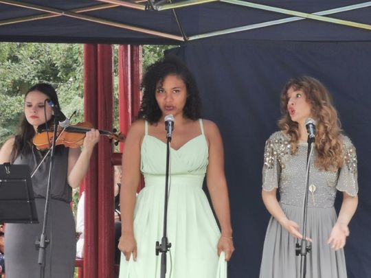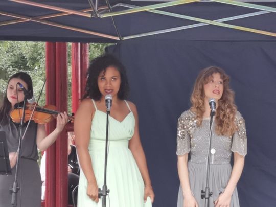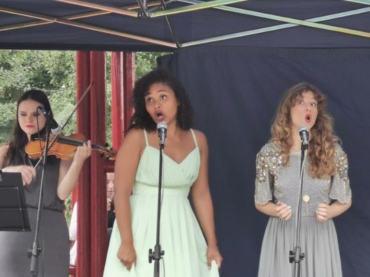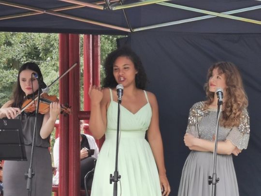 W składzie FAIRY LADIES usłyszeliśmy i zobaczyliśmy – bo uroda pań doskonale koresponduję z „urodą” wykonywanej przez nie muzyki Magdalenę Motyl (sopran), Olivię Ugha (sopran), Marię Radoszewską (skrzypce, wokal), Olhę Bila (fortepian).