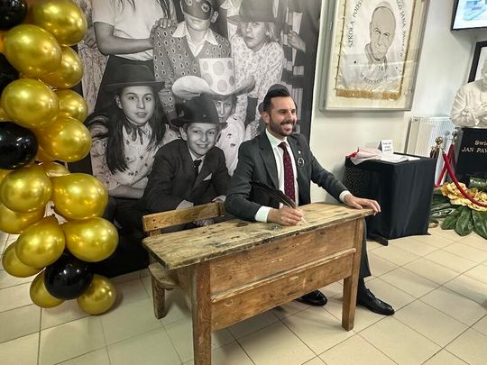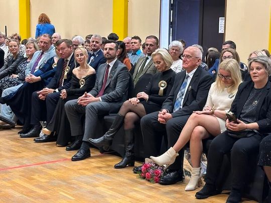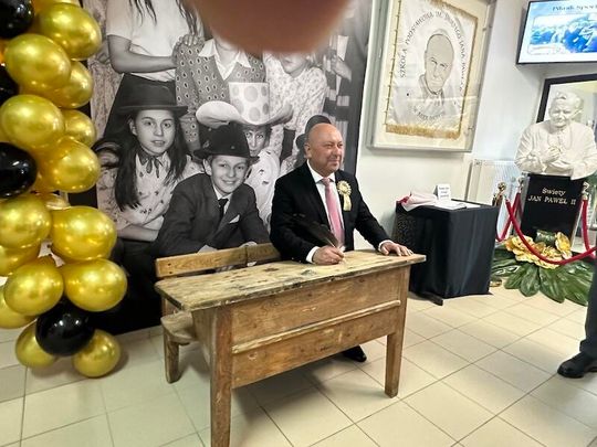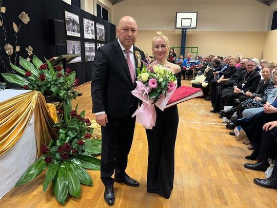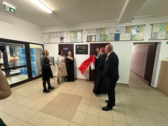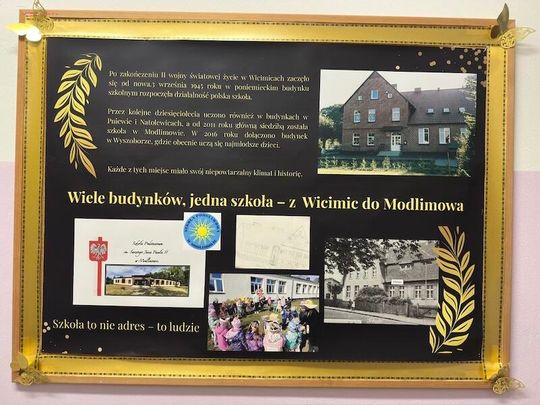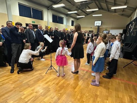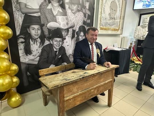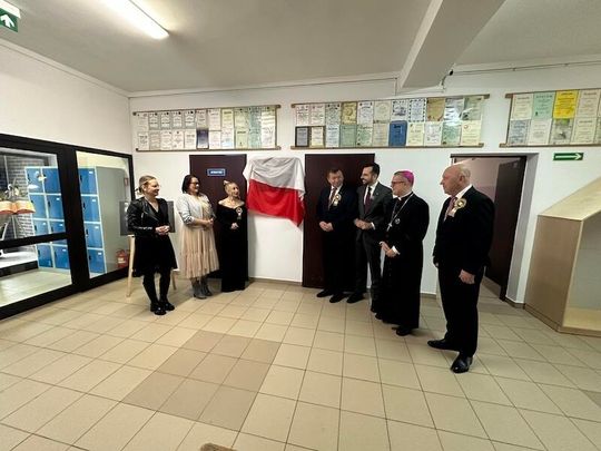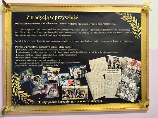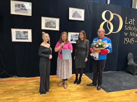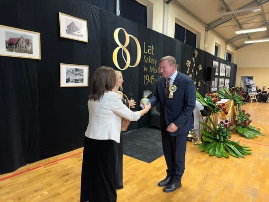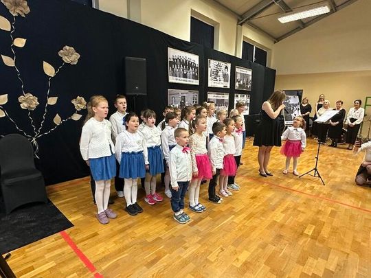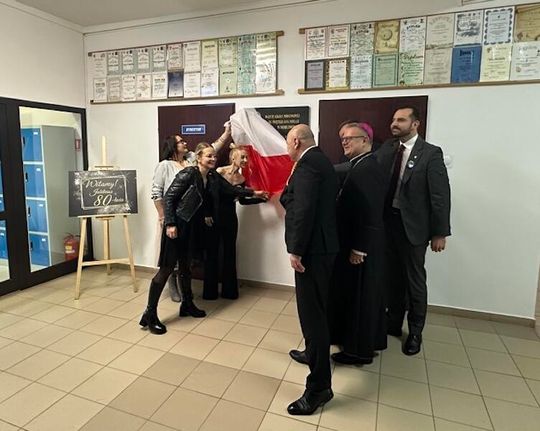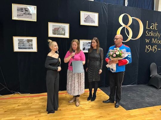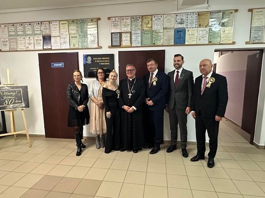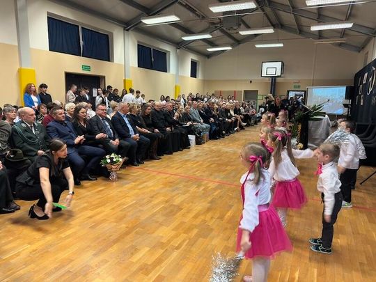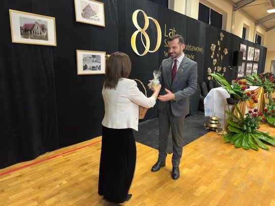 W trakcie jubileuszu odsłonięto pamiątkową tablicę ufundowaną przez Radę Rodziców, upamiętniającą historię i dorobek szkoły. Zastępca Burmistrza Paulina Kusajda oraz Dyrektor szkoły Marzena Stępień przedstawiły bogatą historię placówki, podkreślając jej znaczenie dla lokalnej społeczności.