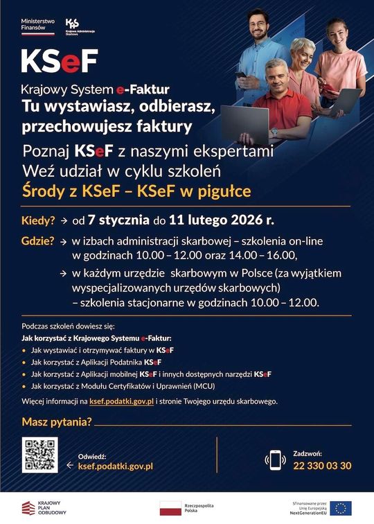 - W środę, 7 stycznia 2026 r. rozpoczynamy kolejny cykl szkoleń dotyczących Krajowego Systemu e-Faktur.