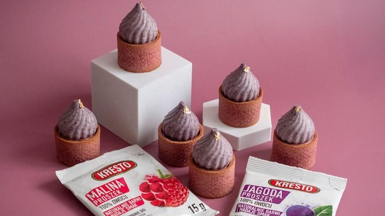 Karnawał to idealny moment na słodkie przyjemności w efektownym wydaniu. Monoporcje jagodowo-malinowe zachwycają formą, kolorem i głębią smaku – od kruchego malinowego spodu, przez aksamitny ganache, aż po lekki mus jagodowy.