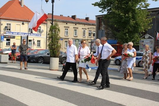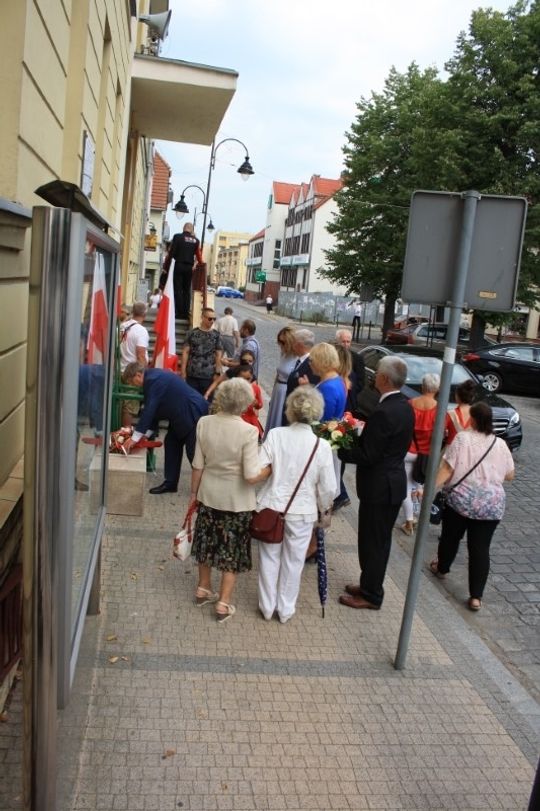Wiązanki kwiatów złożono także przed tablicą pamiątkową na ścianie Gryfickiego Domu Kultury.