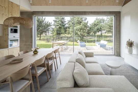 – Najważniejsze było dla nas nadanie możliwie najlepszej formy jasno określonej funkcji. Chodziło o stworzenie miejsca, które stanie się ulubioną przestrzenią spędzania wolnego czasu dla rodzin z dziećmi oraz odwiedzających ich gości. Kluczowa w projekcie jest otaczająca natura. Aby rozmyć granicę między budynkiem a otoczeniem zastosowaliśmy m.in. wielkoformatowe przeszklenia, które otwierają dom na krajobraz.
