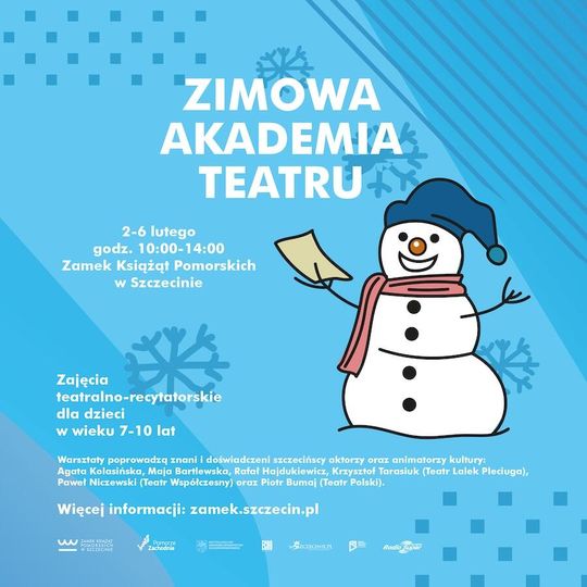 Zimowa Akademia Teatru to cykl zajęć teatralno-recytatorskich skierowanych do dzieci zainteresowanych sceną, słowem i wystąpieniami publicznymi. Uczestnicy poznają podstawy pracy aktora, emisji głosu i dykcji, zajrzą za kulisy teatru oraz popracują nad pewnością siebie.