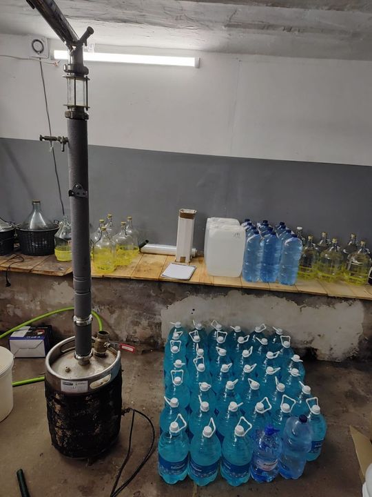W trakcie przeszukania zabezpieczyliśmy 100 litrów zacieru, kompletną aparaturę odpędową alkoholu etylowego oraz 333 litry wytworzonego alkoholu: 68 litrów o mocy 94% i 265 litrów o mocy 45%.