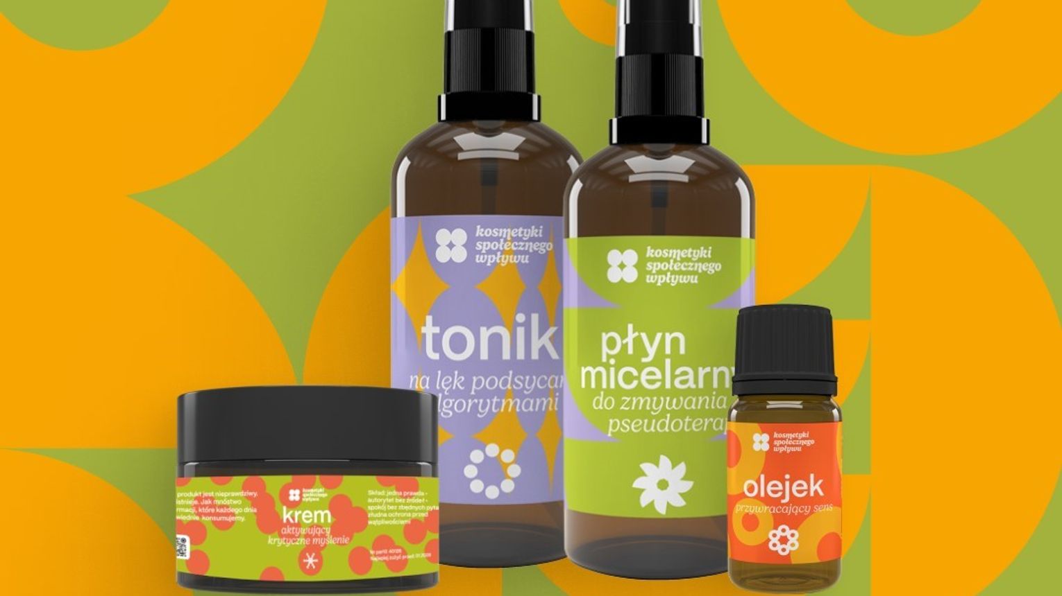 „Trzy produkty są nieprawdziwe, choć piękne, bo dokładnie takie są treści, które często >>wchłaniamy<< bezkrytycznie. Olejek przywracający sens jest po to, by się zatrzymać i zadać pytanie: skąd pochodzi informacja, której ufam i jakie niesie dla mnie znaczenie” - tłumaczy prezeska Fundacji.