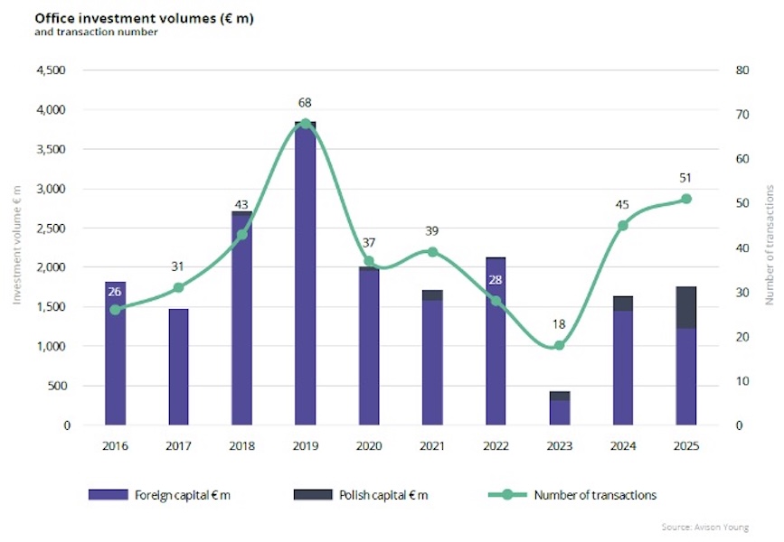 „Kapitał krajowy, odpowiadający za 30% wolumenu sektora i 50% liczby transakcji, nadal odgrywa znaczącą rolę w sektorze biurowym, wykazując rosnące zainteresowanie mniejszymi formatami tego typu. Zmiana ta odzwierciedla zwiększenie zaangażowania polskich inwestorów na polu nieruchomości komercyjnych, szczególnie typu „value-add” i oportunistycznych”. – komentuje Marcin Purgal, Senior Director, Investment w Avison Young