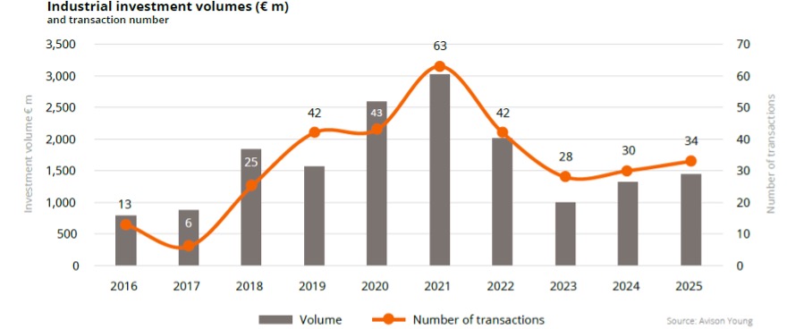 - 1,8 miliarda euro (+7% Y-O-Y) - całkowity wolumen sektora w 2025 r.