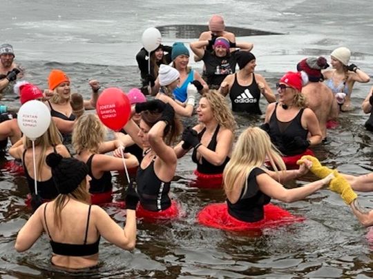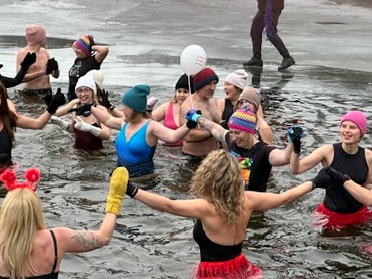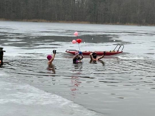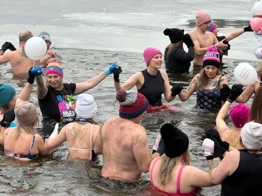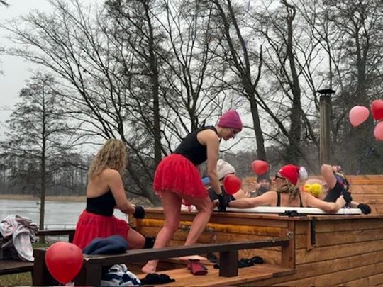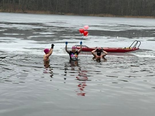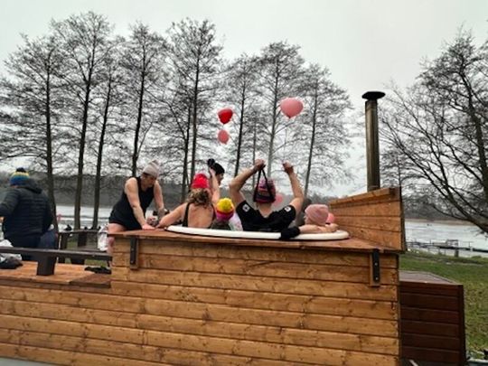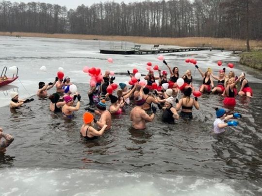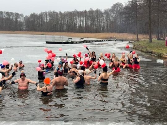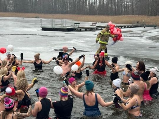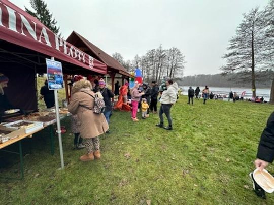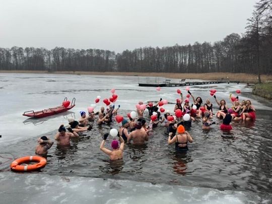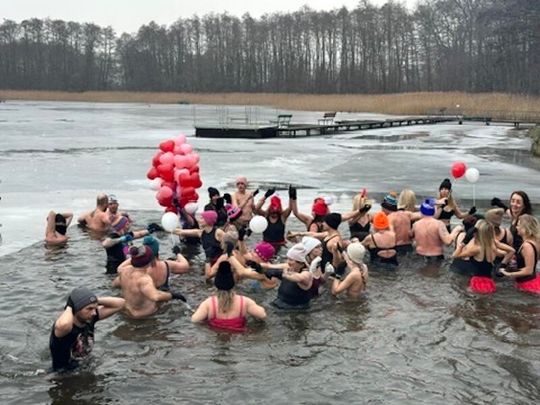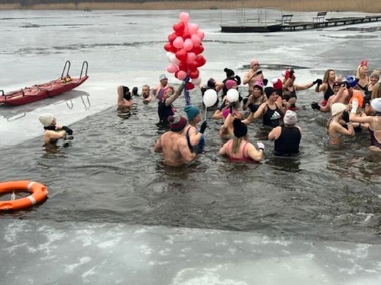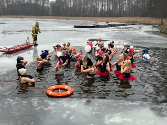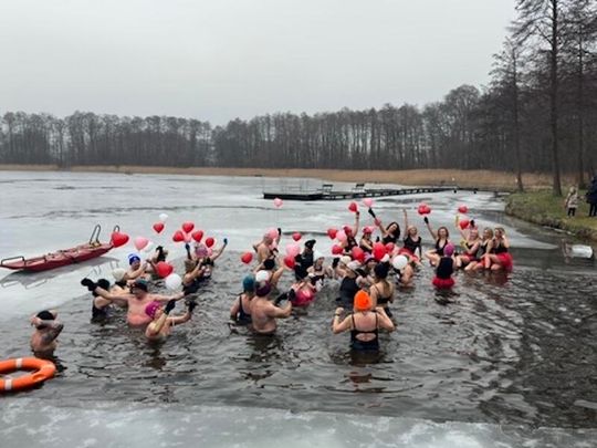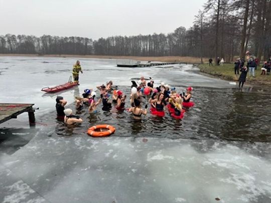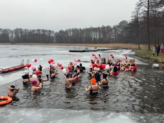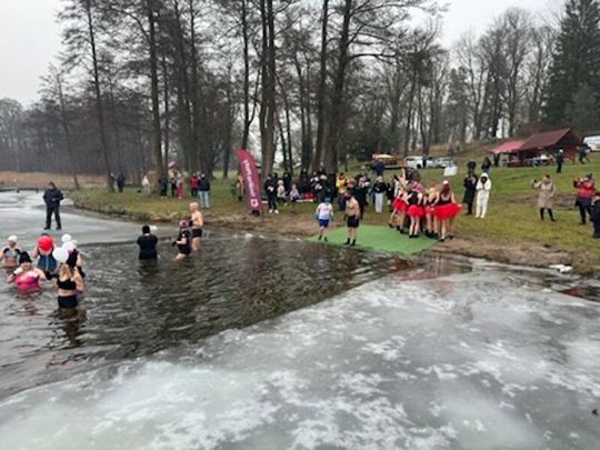 Nad Jeziorem w Kołomąciu już po raz drugi z okazji przygotowań do Wielkiej Orkiestry Świątecznej Pomocy, na tydzień przed finałem, Gmina Płoty zorganizowała charytatywne morsowanie dla WOŚP.