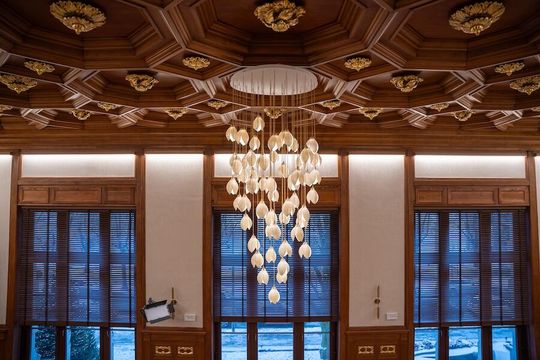 To co od razu przykuwa wzrok w odrestaurowanej sali to nowe oświetlenie – podkreślono nim ozdobne ościeżnice, balkonową galerię i ściany. Pod sufitem zawisła wielka lampa z 55 punktami świetlnymi skrytymi w kloszach przypominających kwiaty.
