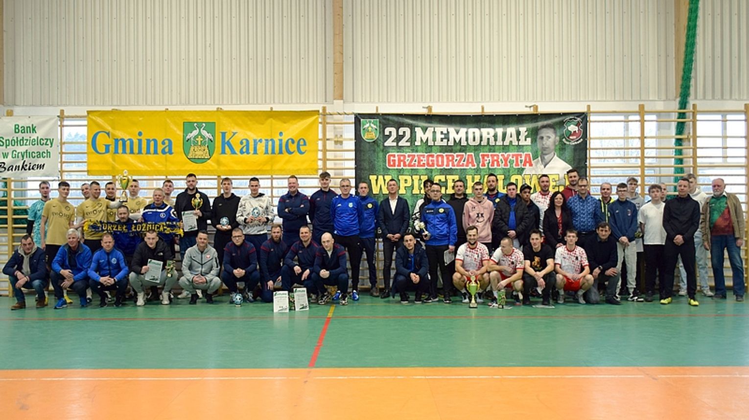 W minioną sobotę, 24 stycznia br., w hali sportowej w Karnicach odbył się Memoriał im. Grzegorza Fryta. Już po raz 22. piłkarze spotkali się na karnickim parkiecie, by poprzez sportową rywalizację uczcić pamięć śp. Grzegorza Fryta – piłkarza i samorządowca. To najstarszy w regionie halowy turniej piłkarski, organizowany przez Gminę Karnice oraz GKS Bizon 1977 Cerkwica. Jak co roku swoją obecnością zaszczyciła wszystkich mama Grzegorza, Pani Alfreda Fryt, której towarzyszyła najbliższa rodzina. Prezes Zarządu GKS Bizon Cerkwica Mateusz Żywicki, Radny Gminy Karnice Andrzej Gutowski oraz Przewodniczący Rady Powiatu Gryfickiego Łukasz Czyrny powitali Panią Alfredę bukietem kwiatów, dziękując jej za obecność. Część oficjalną zakończyła minuta ciszy poświęcona nie tylko Grzegorzowi Frytowi, ale także śp. Krzysztofowi Wilczyńskiemu i śp. Julianowi Bumbulowi – osobom, które przez lata współtworzyły to wydarzenie.